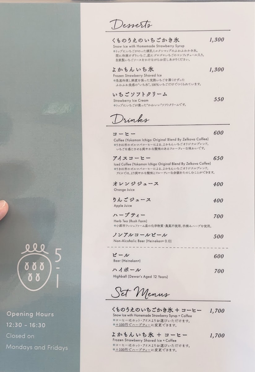 よかもんいちご研究所 Yokamon1-5Lab Menu